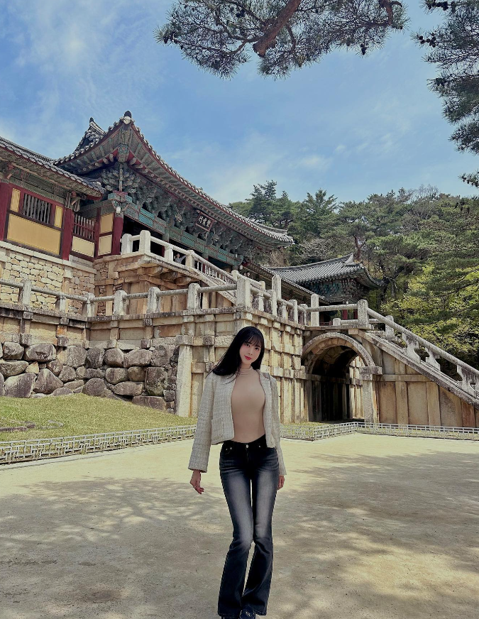 김한나 치어리더는 최근 본인의 소셜네트워크서비스(SNS)에 "즐거웠던 경주여행, 벚꽃 다 지기 전에 가서 다행이었다"라는 글과 함께 여러 장의 사진을 올렸다.