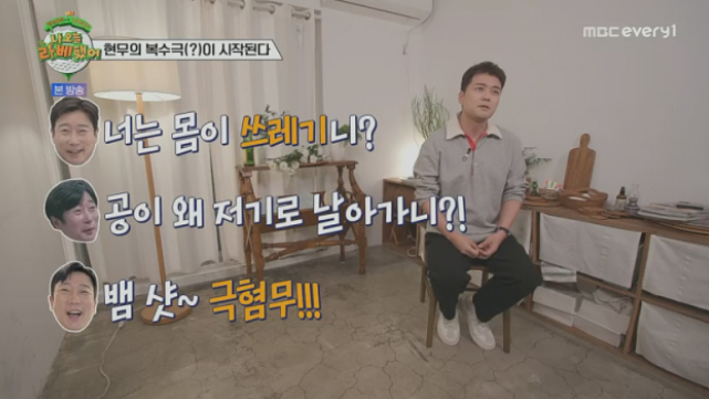 전현무는 이어 "'골프의 세계에 마음을 열라'고 해놓고 마음을 닫게 하는 거야. 막 '야 너는 몸이 쓰레기니?', '어떻게 공이 저기로 날아가니?!', '어우 뱀 샷~ 극혐무!!!'라고 너무 놀려가지고..."라고 당시 상황을 공개했다.