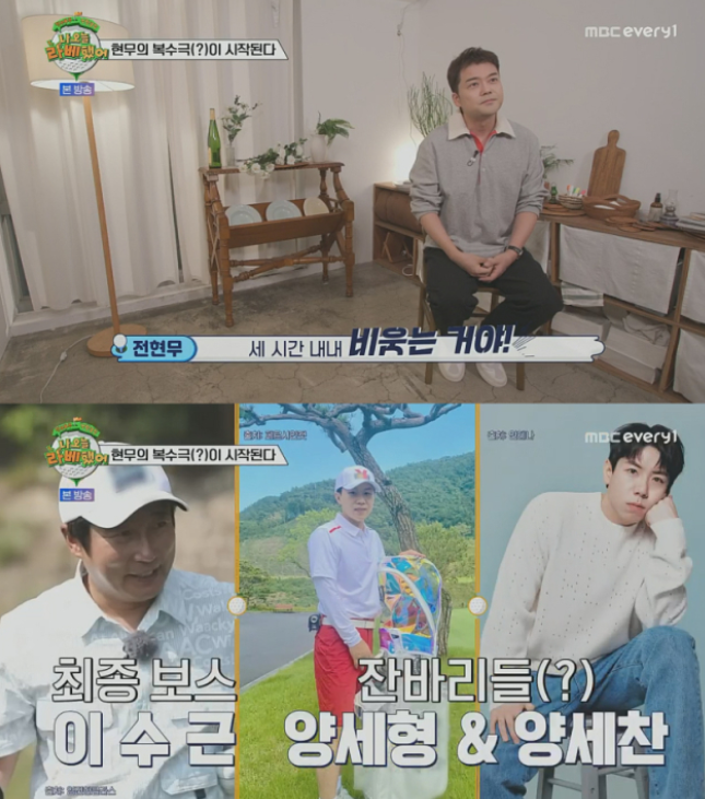 그러면서 전현무는 "그 형을 제일 위에 놓고 약간 잔바리들, 양세형부터 해서 양세찬 이런 애들을 팡! 팡! 팡! 쳐내려 가면서~ 도장을 깨겠다! '골프'의 'ㄱ'도 얘기하지 마라! 라고 얘기를 하고 싶은 게 제 꿈이다. 될 지 안 될지는 모르겠지만"이라고 바람을 전하며 복수의 칼날을 갈았다.