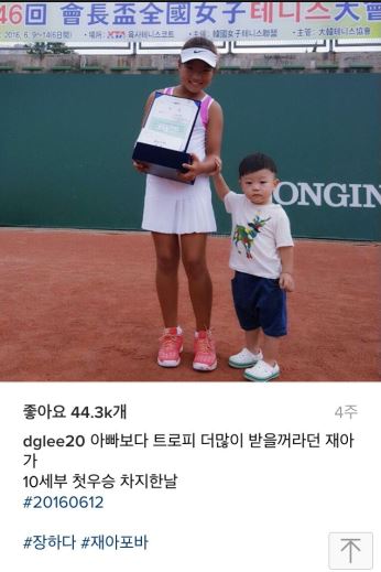 축구 국가대표 출신 이동국 선수의 딸 재아 양이 테니스대회에서 우승을 차지했다.