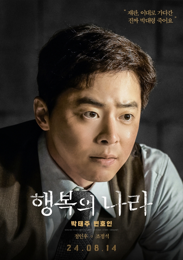 오는 8월 14일 개봉 예정인 영화 '행복의 나라'가 캐릭터 포스터를 공개했다. 이 영화는 1979년 10월 26일 발생한 대통령 암살 사건을 배경으로, 상관의 명령에 따라 사건에 연루된 박태주(이선균 분)와 그의 변호를 맡은 변호사 정인후(조정석 분)의 이야기를 그리고 있다.