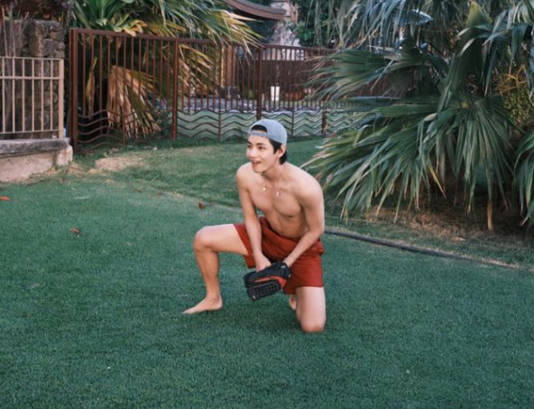 21일 뷔는 자신의 인스타그램을 통해 휴가 중 일상이 담긴 여러 장의 사진을 게재했다. 공개된 사진에서 뷔는 이전과 달리 벌크업한 모습으로, 상의를 탈의한 채 완벽한 복근을 드러내 팬들의 이목을 집중시켰다.