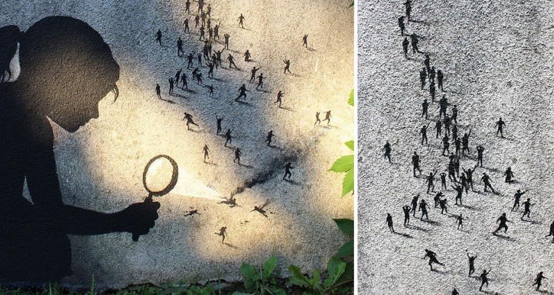 자세히 살펴보면 벽화의 소년과 소녀가 돋보기를 이용해 사람을 태워죽있다는 사실을 알 수 있다. 개미떼 인줄 알았던 것은 아주 작은 사람들이었고 사람들은 손을 하늘로 뻗으며 살려달라는 듯이 외치고 있다. 또한 이미 타버린 사람들의 시체도 발견할 수 있다.