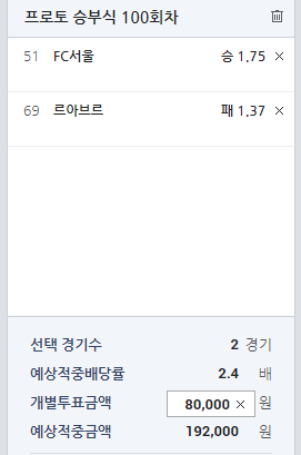 | 번호 | 경기일시 | 홈팀 | - | 원정팀 | 프리미엄PICK |