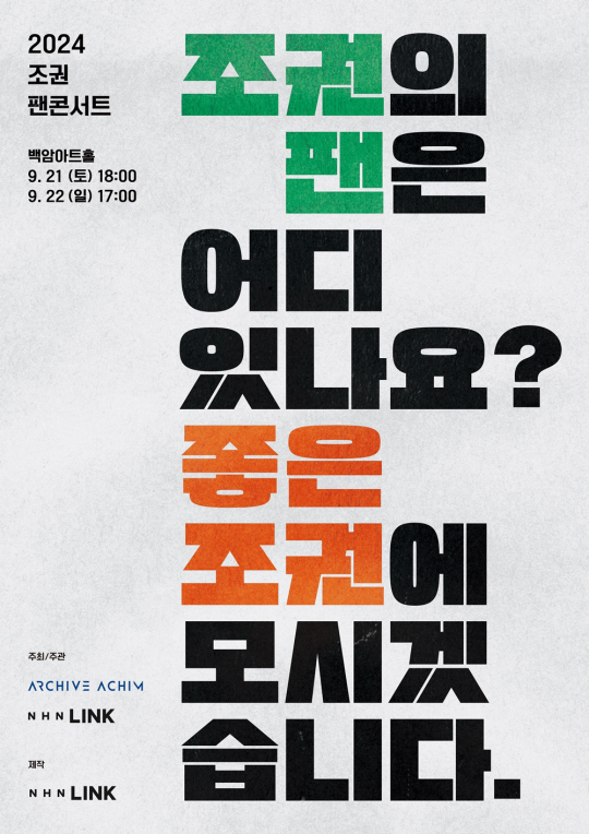 '2024 조권 팬콘서트 - 조권의 팬은 어디 있나요? 좋은 조권에 모시겠습니다' 티켓 예매는 오는 22일 오후 8시부터 티켓링크를 통해 시작된다. 팬들의 뜨거운 호응이 예상되는 가운데, 조권이 어떤 특별한 무대를 선보일지 기대를 모으고 있다.