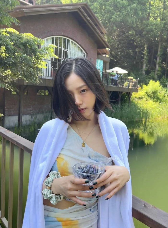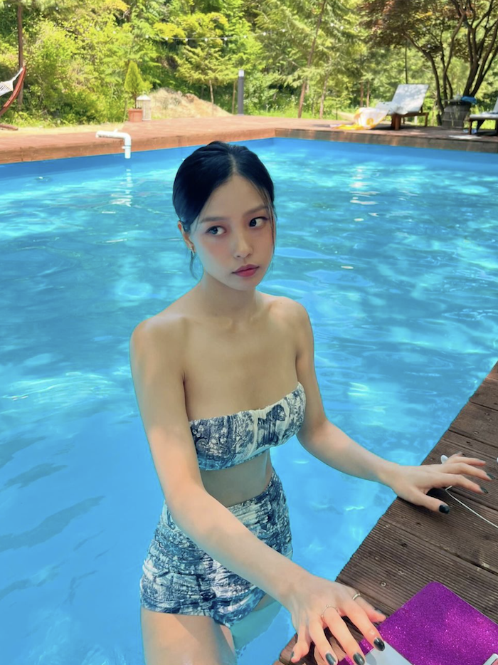 25일, 고민시는 자신의 SNS를 통해 "아무도 없는 숲속에서 #THEFROG"라는 문구와 함께 수영복 차림의 사진을 게재했다. 공개된 사진에서 고민시는 청량한 푸른색 비키니와 독특한 색상의 원숄더 수영복을 착용, 가녀린 몸매와 매끈한 어깨라인을 과시했다.