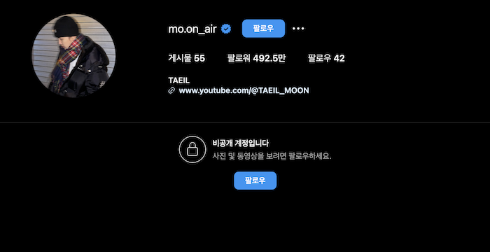5일 오전, 태일은 자신의 인스타그램 계정을 비공개로 변경했다. 현재 그의 계정에 접속하면 '비공개 계정입니다'라는 메시지가 표시되며, 여전히 493만 명의 팔로워 수는 유지되고 있다.