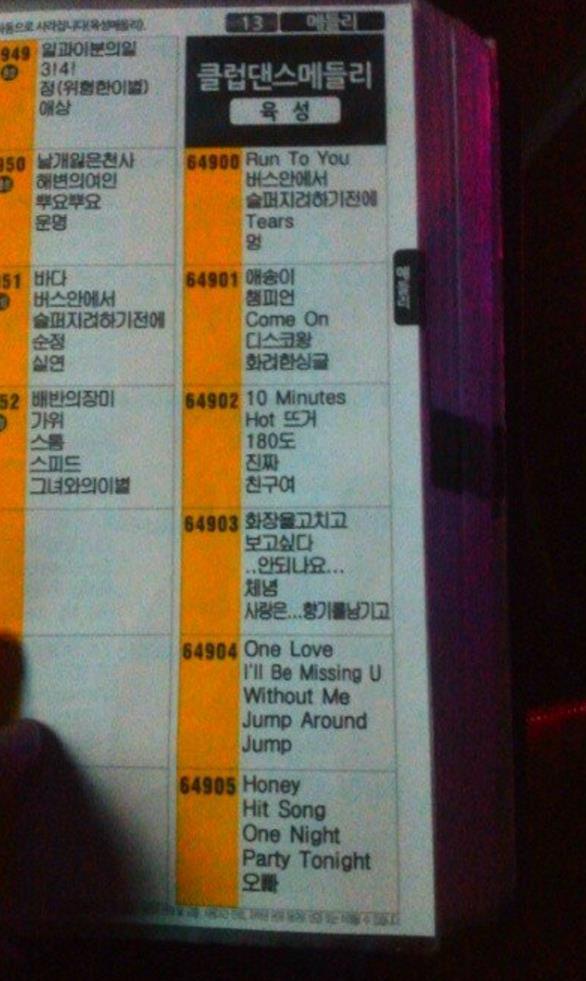 '64900'번 노래는 '댄스메들리 1'이다. 메들리는 여러 곡을 1절씩만 해서 묶어 놓은 곡으로 '댄스메들리 1'은 노래방의 인기 댄스곡을 묶어 놓은 곡이다.
