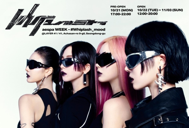 걸그룹 에스파(aespa)가 다섯 번째 미니 앨범 ‘위플래시’(Whiplash) 발매를 기념해 팝업 스토어를 연다. 14일 소속사 SM엔터테인먼트는 ‘에스파 위크 - #위플래시 무드’(aespa WEEK - #Whiplash_mood)라는 이름의 팝업 스토어가 21일부터 11월 3일까지 서울 성동구 아차산로 인근에서 열린다고 밝혔다.