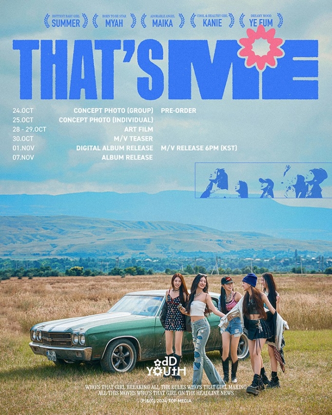 포스터 속에는 오드유스 멤버 서머(SUMMER), 마야(MYAH), 마이카(MAIKA), 카니(KANIE), 예음(YEEUM)의 모습이 담겨 있다. 이들은 클래식카 앞에서 환한 미소를 지으며 영화 포스터를 연상케 하는 감각적인 비주얼을 선보였고, 각자의 개성을 살린 스타일리시한 시밀러룩으로 눈길을 끌었다.