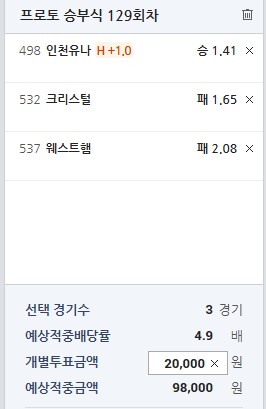 | 번호 | 경기일시 | 홈팀 | - | 원정팀 | 프리미엄PICK |