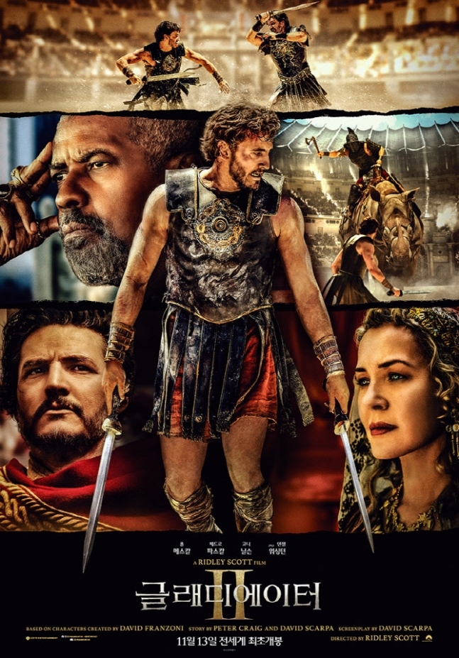 ‘글래디에이터 Ⅱ’는 전작 주인공 막시무스의 죽음 이후 20여 년 뒤, 로마의 운명을 건 콜로세움 결투에 나선 루시우스(폴 메스칼)의 이야기를 중심으로 한 작품이다. 리들리 스콧 감독이 다시 연출을 맡았으며, 폴 메스칼, 페드로 파스칼, 덴젤 워싱턴 등 화려한 캐스팅이 합류해 업그레이드된 검투 액션과 스펙터클한 해상 전투, 깊이 있는 캐릭터 서사로 관객의 기대를 한껏 모으고 있다.