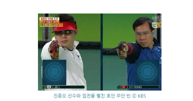 그런데 이 때 2위를 차지한 베트남의 사격 선수 '호안 쑤안 빈(42)'은 자신의 오른손을 들어 왼쪽 가슴에 얹었다. 우리가 흔히 말하는 '국기에 대한 경례'를 베트남 선수가 한 것. '호안 쑤안 빈'은 왜 태극기와 애국가 앞에서 국기에 대한 경례를 했던 것일까.