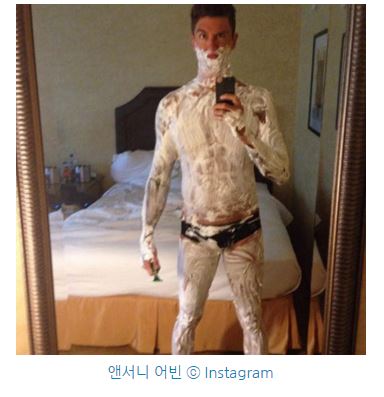 미국의 수영 국가대표 '앤서니 어빈(35)은 자신의 SNS에 온몸에 제모 크림을 바른 사진을 공개했다. 사진 속에서 어빈은 온몸을 하얗게 칠하고 한 손에는 면도기를 들고 있다. 어빈은 지난 6일 리우 올림픽 남자 4x100m 자유형 계주에서 금메달을 목에 걸었다.