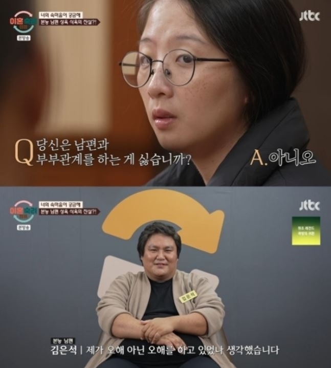 김보현 씨는 부부관계에 대한 질문에도 예상치 못한 답변을 내놓았다. "남편과 부부관계를 하는 게 싫냐"고 묻자, "싫지 않다"고 답해 모두를 놀라게 했다. 이와 관련해 남편은 “내가 오해 아닌 오해를 하고 있었다”며 웃음을 자아냈다. 반면, 남편은 부부관계를 위해 아내와 함께 사는 것이냐는 물음에 "그렇지 않다"고 답하며 자신의 생각을 밝혔다.
