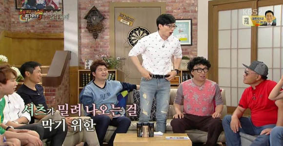 유재석의 셔츠 입는 방법이 여성 누리꾼들에게 충격을 주고 있다.
