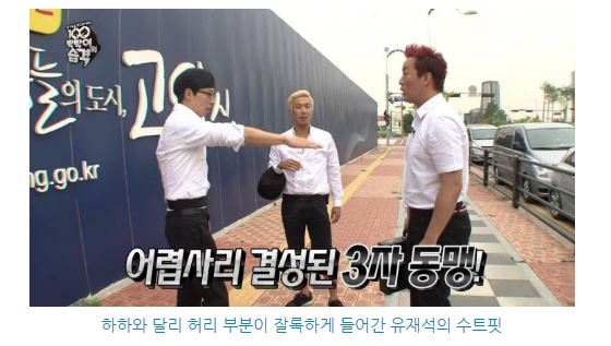 유재석은 수트핏으로 여성들의 마음을 설레게하는 연예인이다. 그러나 유재석의 완벽한 수트핏에는 셔츠 밑단을 팬티에 고정시키는, 여성들이 보기에는 조금 민망해 보일 수도 있는 행동이 숨겨져 있었던 것.