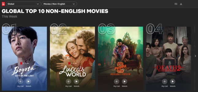 영화 '보고타: 마지막 기회의 땅'이 넷플릭스 공개 후 비영어 영화 부문 글로벌 1위에 올랐다.