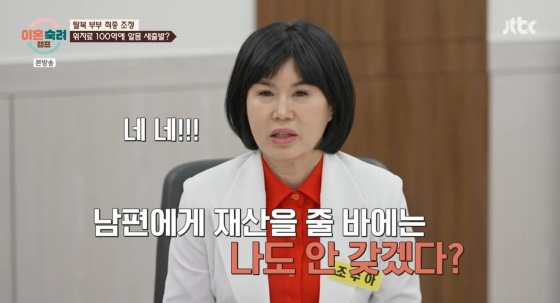 반면 남편은 재산을 나누는 대신 전부 주겠다며 “깔끔하게 떠나는 게 낫다”고 말해 출연진들을 놀라게 했다. 하지만 이 말에 감동한 기색 하나 없이 무심한 반응을 보인 아내의 표정은 시청자들의 웃음을 자아냈다.