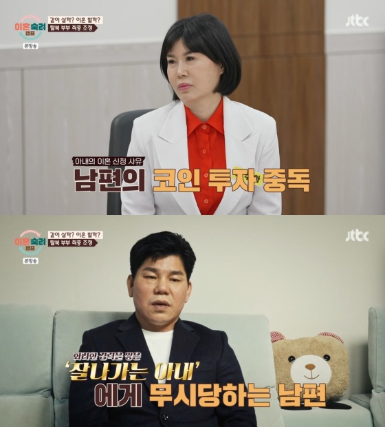 두 사람의 갈등은 남편의 투자 문제에서 비롯됐다. 집안일과 육아를 도맡아 온 남편이 불법 코인에 빠진 이후, 아내는 그로 인한 갈등과 불안에 시달렸다. 남편이 오랜 시간 고집을 꺾지 않자 아내는 결국 이혼을 결심하게 됐다.