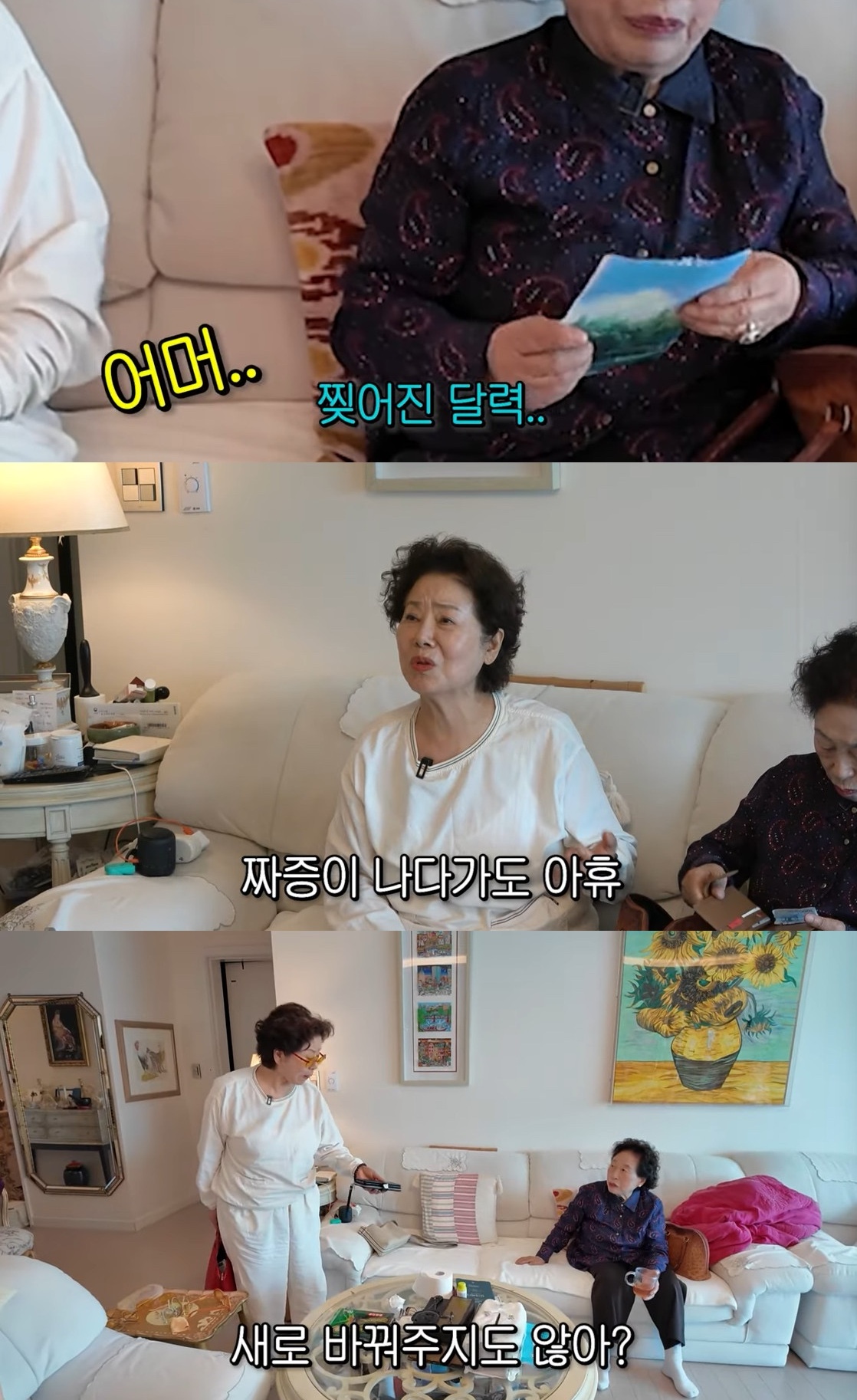 오랜 절약 생활로 유명한 전원주의 낡은 가방과 찢어진 달력으로 만든 스케줄표를 본 선우용여는 놀라움을 감추지 못했다. 전원주는 “아들이 알려줘도 금방 잊는다”며 웃었고, 선우용여는 “그렇게 살지 마라”며 직접 화장품과 건강식 젤리를 선물하는 모습도 전해졌다. 낡은 휴대폰을 테이프로 붙여 쓰는 전원주의 모습은 그의 알뜰한 면모를 다시 한번 보여줬다.