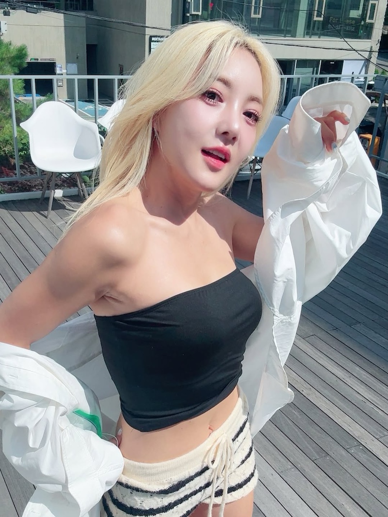 매끈한 어깨 라인과 탄탄한 복부, 짧은 하의로 드러난 각선미까지 완벽한 썸머 스타일링을 선보인 바다는 건강미 넘치는 몸매와 자신감 넘치는 포즈로 시선을 사로잡았다. 세련된 메이크업과 금발 헤어, 자연광 아래 환하게 지은 미소는 화보 같은 분위기를 자아냈다.