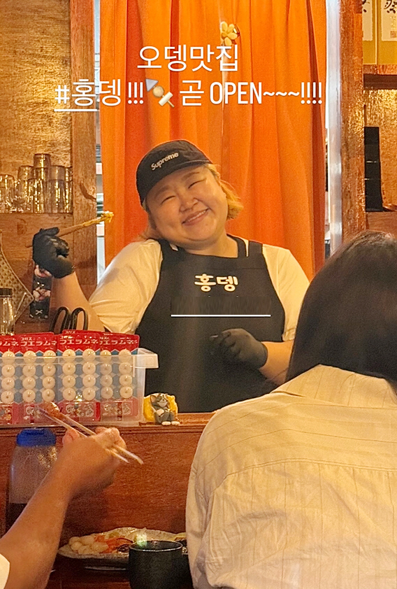 18일 가수 아유미는 “오뎅 맛집. 곧 오픈”이라는 글과 함께 한 장의 사진을 공개했다. 사진 속엔 앞치마를 두르고 손님을 맞이하고 있는 홍윤화의 모습이 담겼다. 환하게 웃는 얼굴과 함께 능숙하게 가게를 준비하는 모습에서 각별한 애정이 묻어났다.