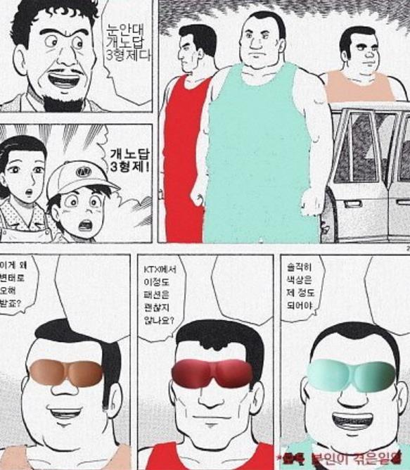 공교롭게도 다이소 안대를 산 3명의 누리꾼들은 모두 '브래지어'처럼 보이는 색깔의 안대를 구매했던 것. 이들의 모습을 지켜본 다른 누리꾼들은 브래지어를 닮은 안대를 구매한 3명을 '눈안대 개노답 3형제'라고 부르기 시작했다. 또한 누리꾼들은 인터넷 세계에서 인기를 끌었던 '개노답 3형제' 이미지를 사용하여 '눈안대 개노답 3형제'라는 새로운 이미지를 만들어냈다.