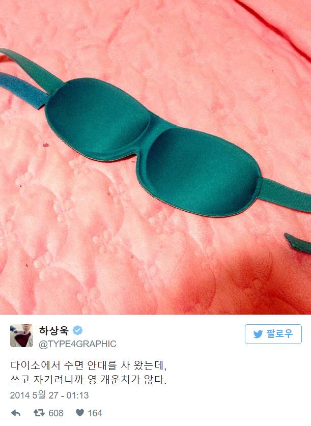 한편 SNS시인 하상욱도 해당 안대를 언급한 바 있다. 하상욱 시인은 "다이소에서 수면 안대를 샀는데 쓰고 자려니까 영 개운치가 않다"며 안대의 디자인에 대해 의문을 표한 바 있다.
