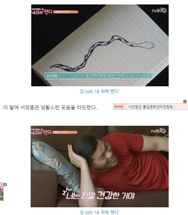 서장훈이 그린 뱀을 본 난다김은 "이게 뭐냐면 성에 대한 욕구를 알아보는 테스트"라며 그림을 해석했다.