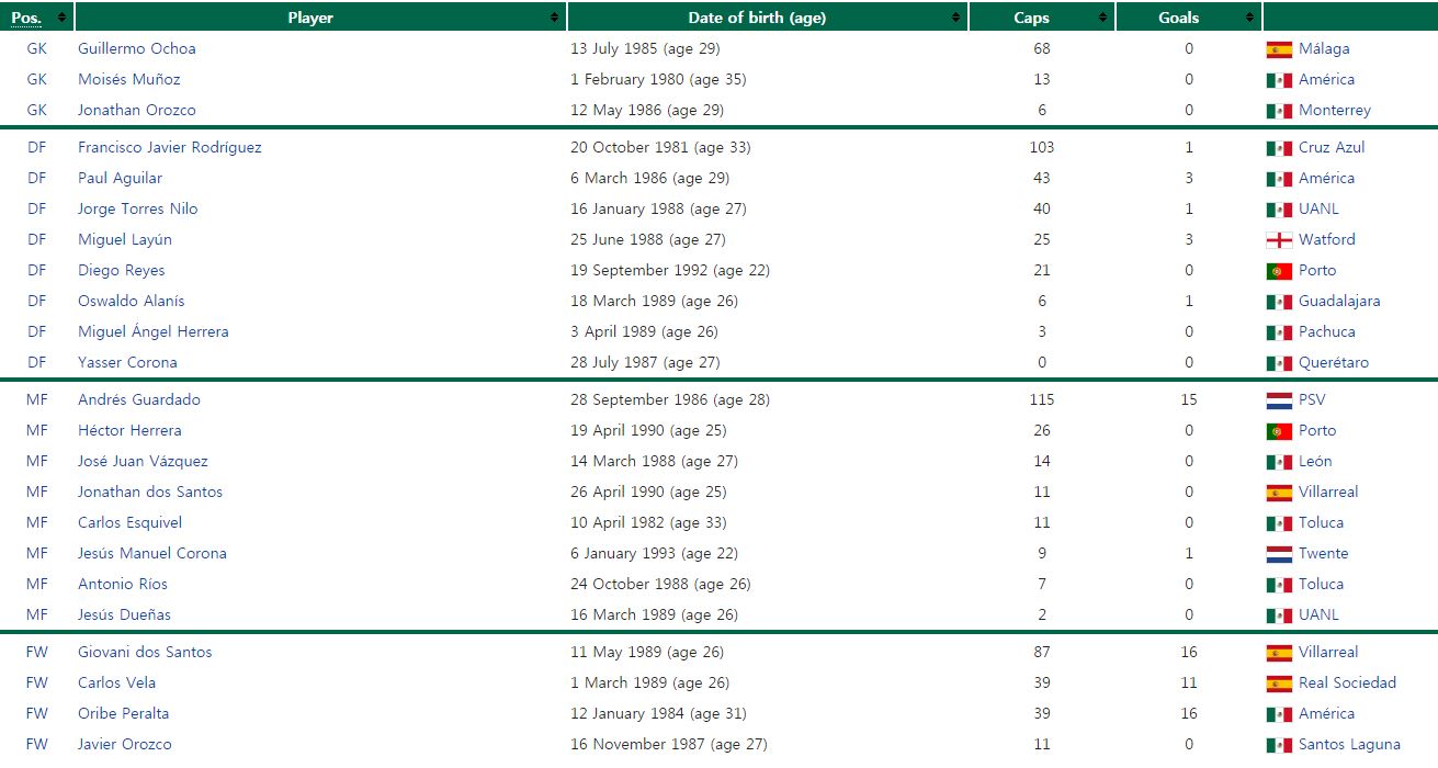 ◆멕시코(FIFA 랭킹 23위)