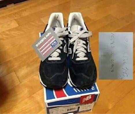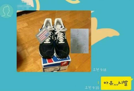 신발 사진 옆에 메모쪽지 사진을 어색하게 합성한 사진을 보낸 것이다.