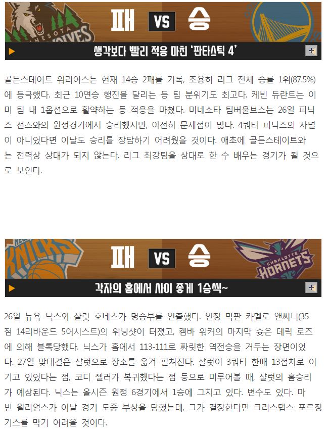 [NBA 27일 예상] 샬럿과 뉴욕, 명승부 극장 재개봉?