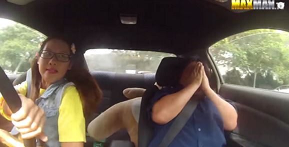 몰래카메라에 등장한 운전 초보 학생은 사실 말레이시아 여자 레이싱 챔피언인 리오나 친. 그는 하드코어 드리프트로 유명한 선수다.