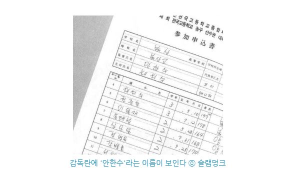 슬램덩크 '안 선생님'의 이름이 누리꾼들 사이에서 화제가 되고 있다.