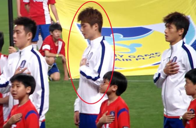 한편 우리나라의 축구선수 기성용은 경기 시작 전에 하는 '국기에 대한 경례' 때 오른손이 아닌 왼손을 가슴에 올려 논란에 휘말린 바 있다. 논란에 휩싸인 기성용은 "큰 경기에서 왼손으로 경례하는 실수를 한 것은 잘못했다고 생각한다. 다시는 이런 실수가 없도록 하겠다"고 곧바로 사과했다.
