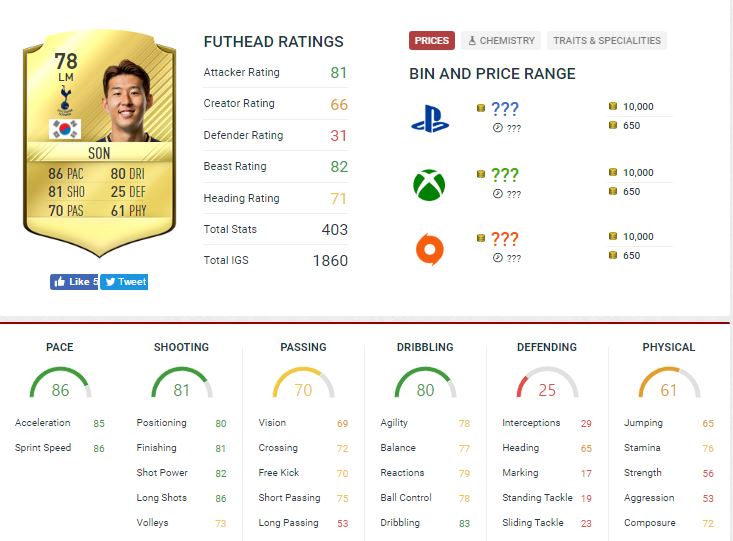 토트넘 소속 손흥민이 프리미어리그 이 달의 선수상을 올시즌 2번이나 받는 쾌거를 올렸다. 동시에 축구 게임 FIFA17의 능력치가 꽤나 높은 수준으로 상향 조정됐다. 메시, 호날두, 손흥민의 기본 능력치는 꽤나 격차가 있는데...(가장 하단이 이번에 조정된 손흥민 능력치)