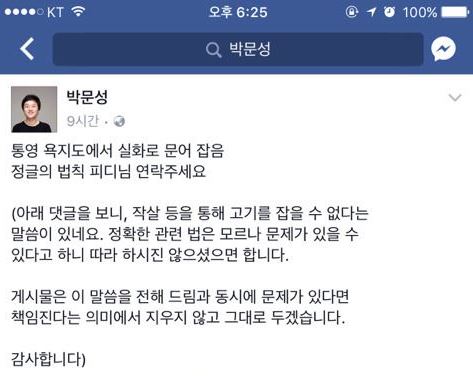 통영에 놀러갔다가 작살로 문어를 잡은 사진을 올린 박문성 스포츠 해설위원이 불법포획 논란이 일자 이에 대한 답변을 올렸다.