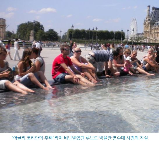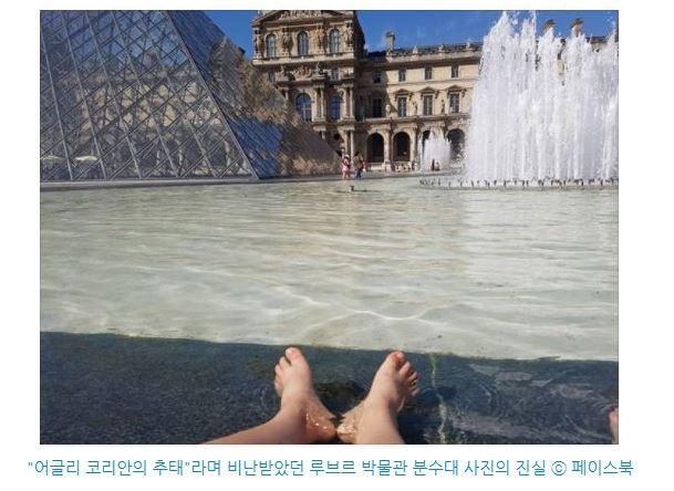 이어진 사진에는 수많은 관광객들이 루브르 박물관 앞 분수대에서 시원한 족욕을 즐기는 풍경이 그려졌다.