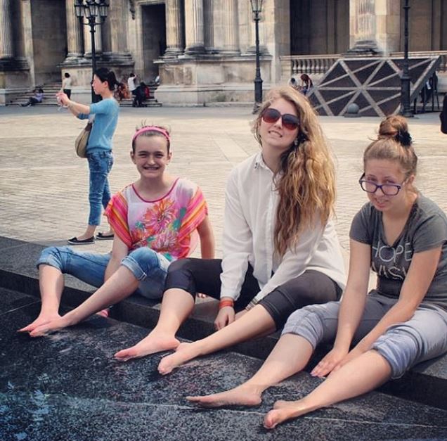 사진에는 프랑스 루브르박물관 앞 분수대에 발을 담그고 있는 장면이 담겨있다.