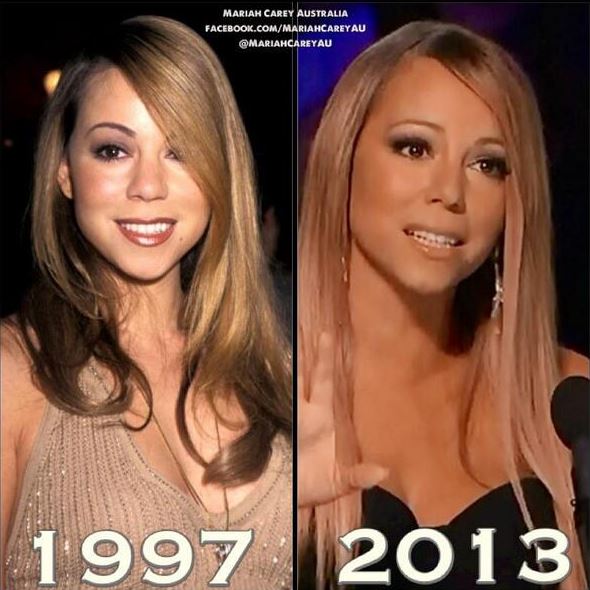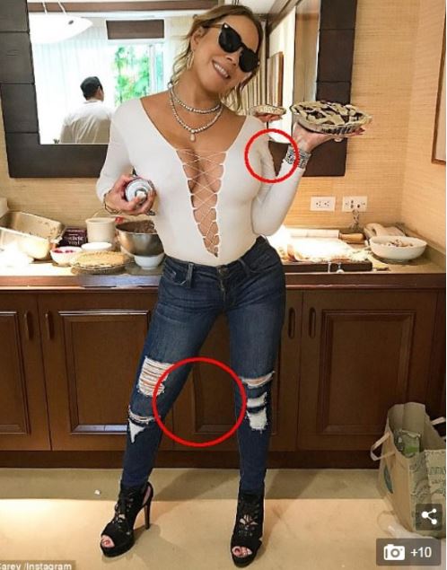 체중이 너무 많이 불어난 몸매로 등장해 화제가 되었던 세계적인 팝가수 '머라이어 캐리'가 포토샵 보정작업을 지나치게 많이 한 잡지 화보로 네티즌 사이에서 논란이 되고 있다.