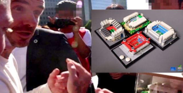 상자에는 베컴이 현역 시절 뛰었던 소속팀 4곳의 홈구장을 표현한 레고가 담겨있었다.