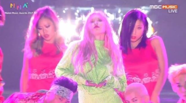 지난 2일 '2017 멜론 뮤직어워드(MMA)'에서 컴백을 알린 현아는 신곡 '립앤힙(Lip & Hip)' 무대를 꾸몄다.