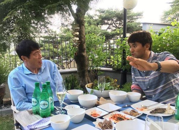 지난 12일 SBS 아나운서 배성재는 자신의 인스타그램에 '레전드 매치 토크쇼 직관'이라는 글과 함께 축구의 레전드로 손꼽히는 차범근, 박지성과 야구계의 레전드 박찬호가 함께 있는 사진을 올렸다.