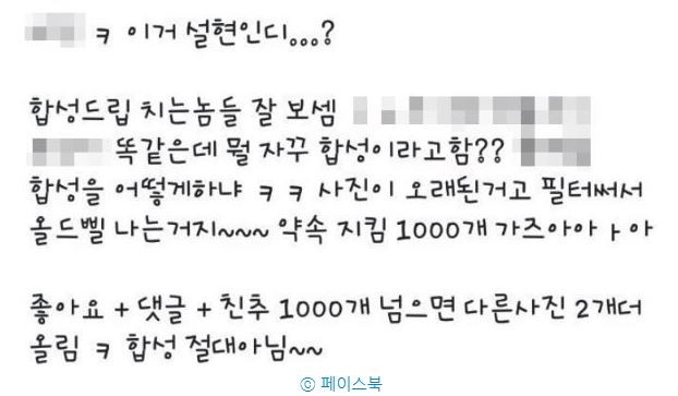 해당 게시물을 쓴 누리꾼 A씨는 "연예인 합성사진이 돌아다니는 일이 워낙 비일비재해서 고소까지 가는 경우는 거의 없었다"며 입을 열었다.