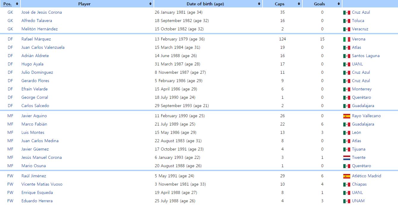 2015 코파아메리카를 앞둔 평가전. 먼저 멕시코는 GD산토스, 치차리토, 페랄타 등 익숙한 선수들이 대거 제외됐다. 유럽파는 단 4명으로 FW 히메네스(ATM), MF 아키노(라요) 등이 핵심 역할을 맡을 전망이다. 36살의 베테랑 DF 마르케스는 명단에 포함됐다. 페루는 100% 전력이다. 유럽파 FW 피차로(바이에른뮌헨) 파르판(샬케) MF 바르가스(피오렌티나) 등은 물론 브라질서 뛰는 베테랑 FW 게레로도 코파아메리카 명단에 포함됐다. 페루의 최근 A매치 성적은 2승 2패. 반쪽짜리 멕시코라면 해볼 만한 승부다.