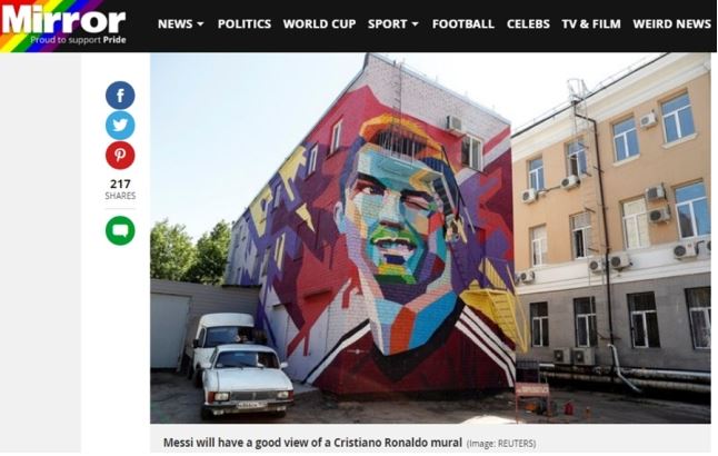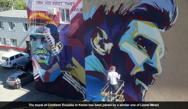 결국 카잔에 있는 아티스트들을 붓을 꺼내들었다. 영국 데일리메일에 따르면 카잔 예술가들은 호날두 벽화 반대편에 메시 벽화를 금요일 날을 꼬박 그린 것으로 전해졌다.