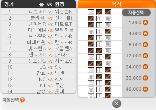 경기번호/ 팀[선발투수] / (추천픽/고려사항)