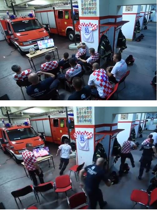 지난 11일(이하 한국 시각) 크로아티아 자그레브 소방서는 공식 페이스북에 소속 소방관들이 크로아티아와 러시아의 8강전 경기를 시청하는 영상을 게시했다.