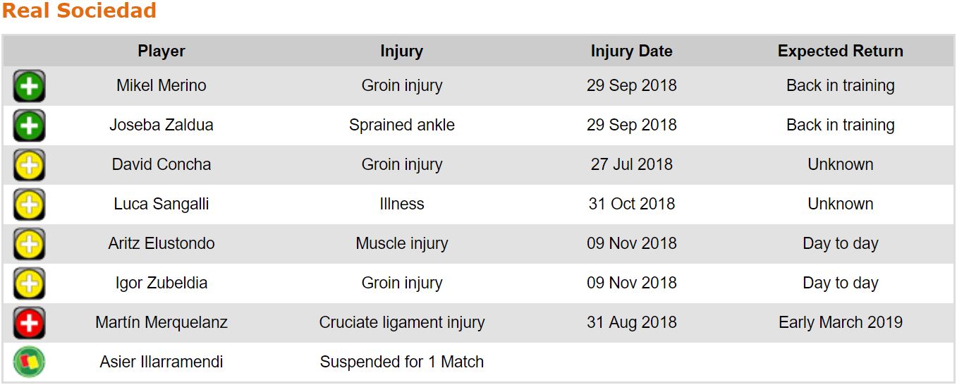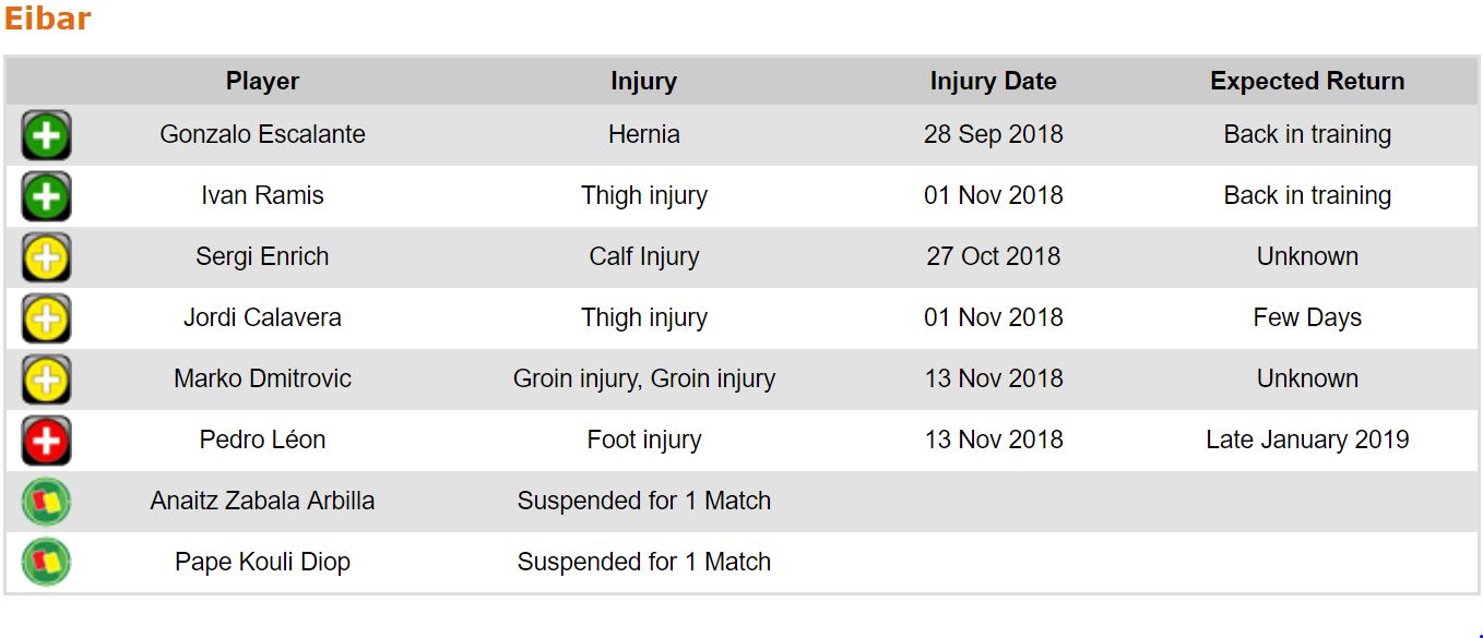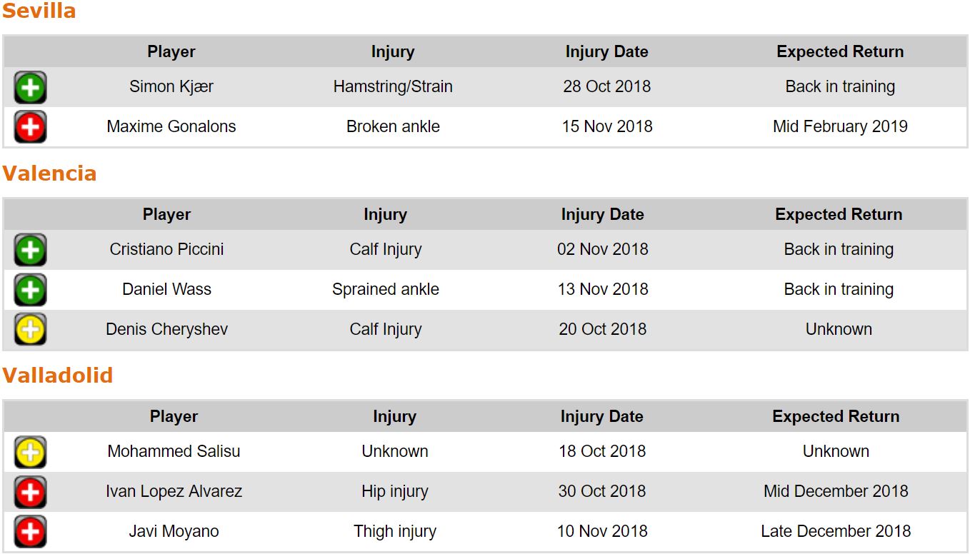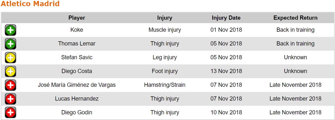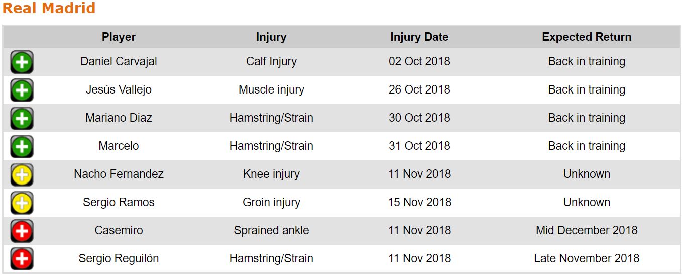 프리메라리가 13라운드 각 팀 부상자 및 결장 예정 선수